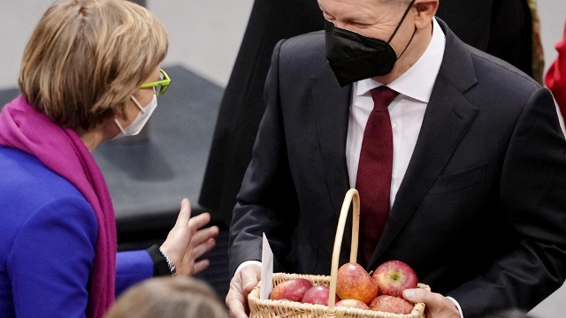 Zu den Unterstützern der Ampelkoalition gehört auch Stefan Seidler, einziger Abgeordneter des Südschleswigschen Wählerverbands. Nach der Kanzlerwahl machte er Olaf Scholz ein besonderes Geschenk. Bundeskanzler Olaf Scholz ( SPD) hat nach seiner Wahl am Mittwoch auch Bio-Obst aus der deutsch-dänische